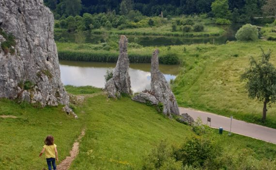 Sehr schöne Wanderung mit tollen, beeindruckenden Felsen. Fahrrad- und kinderwagentauglicher Rundweg. Für Kinder von 3 -12 Jahren. Startpunkt: Eselsburger Tal Wanderparkplatz, L1079, 89542 Herbrechtingen