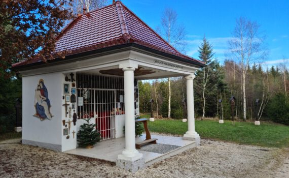kurzer Weg zu einer Kapelle im Wald. Start: Parkplatz an der L1081 von Aalen nach Ebnat kurz vor Ebnat bei der Bushaltestelle Maria Eich Kapelle – Zielpunkt ca. 2 km (hin und zurück) ca. 30 Min