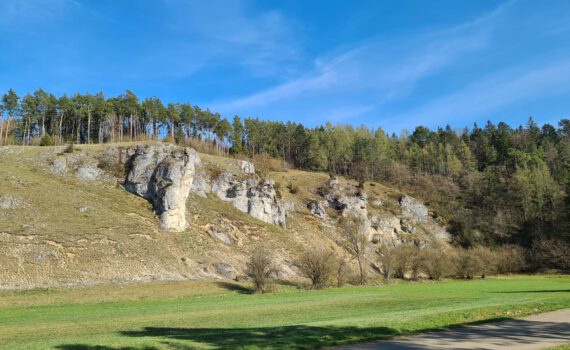 Sehr schöne Wanderung um eine ungewöhnliche Felsformation. Für Kinder von 4 -12 Jahren. Startpunkt: Parkplatz am Goldberg, zwischen Pflaumloch und Goldburghausen, 73469 Riesbürgen